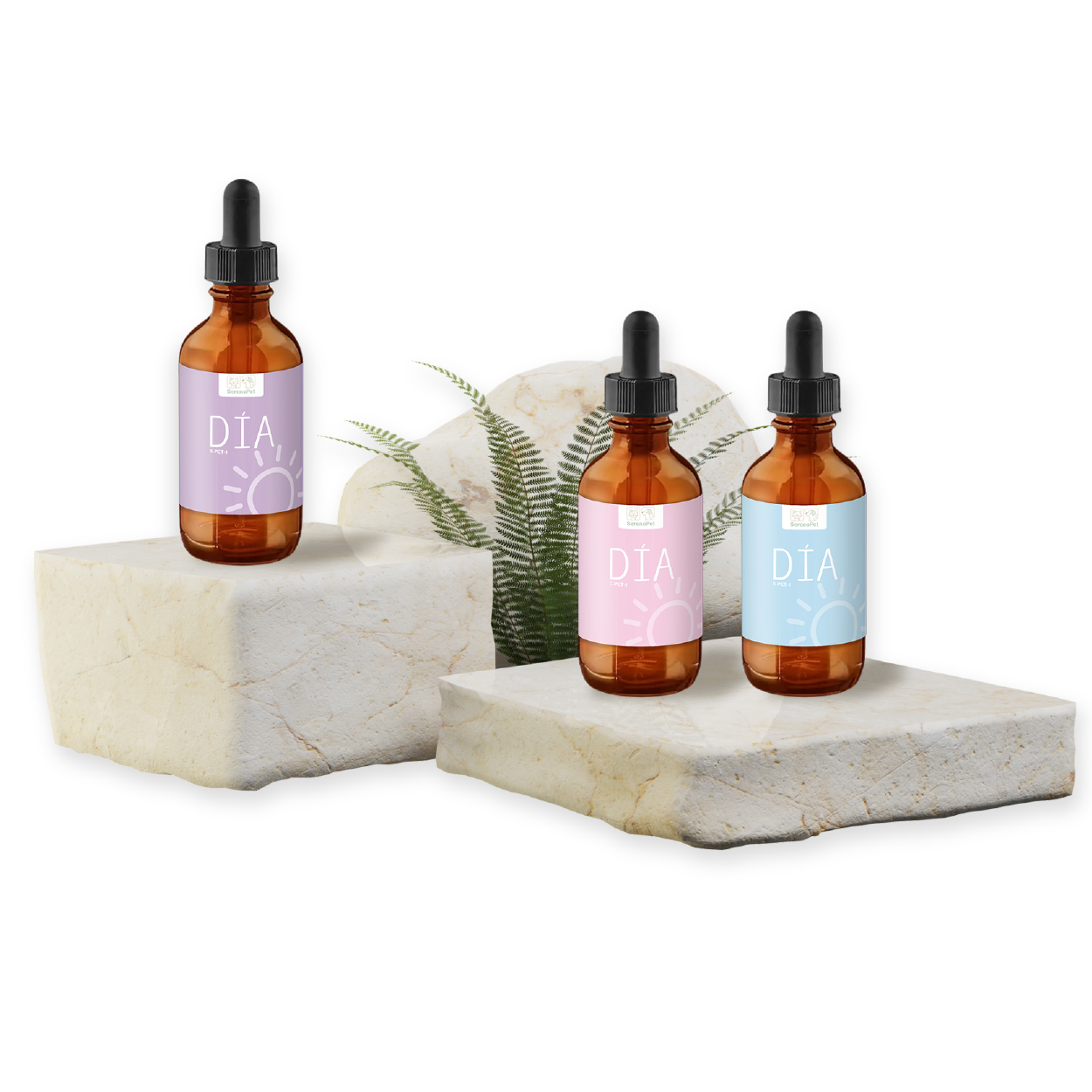 - En el agua: Añade 30 gotas al día, 10 gotas “DÍA” + 5 gotas de “REFUERZO” y 10 gotas “NOCHE” + 5 gotas de “REFUERZO” .